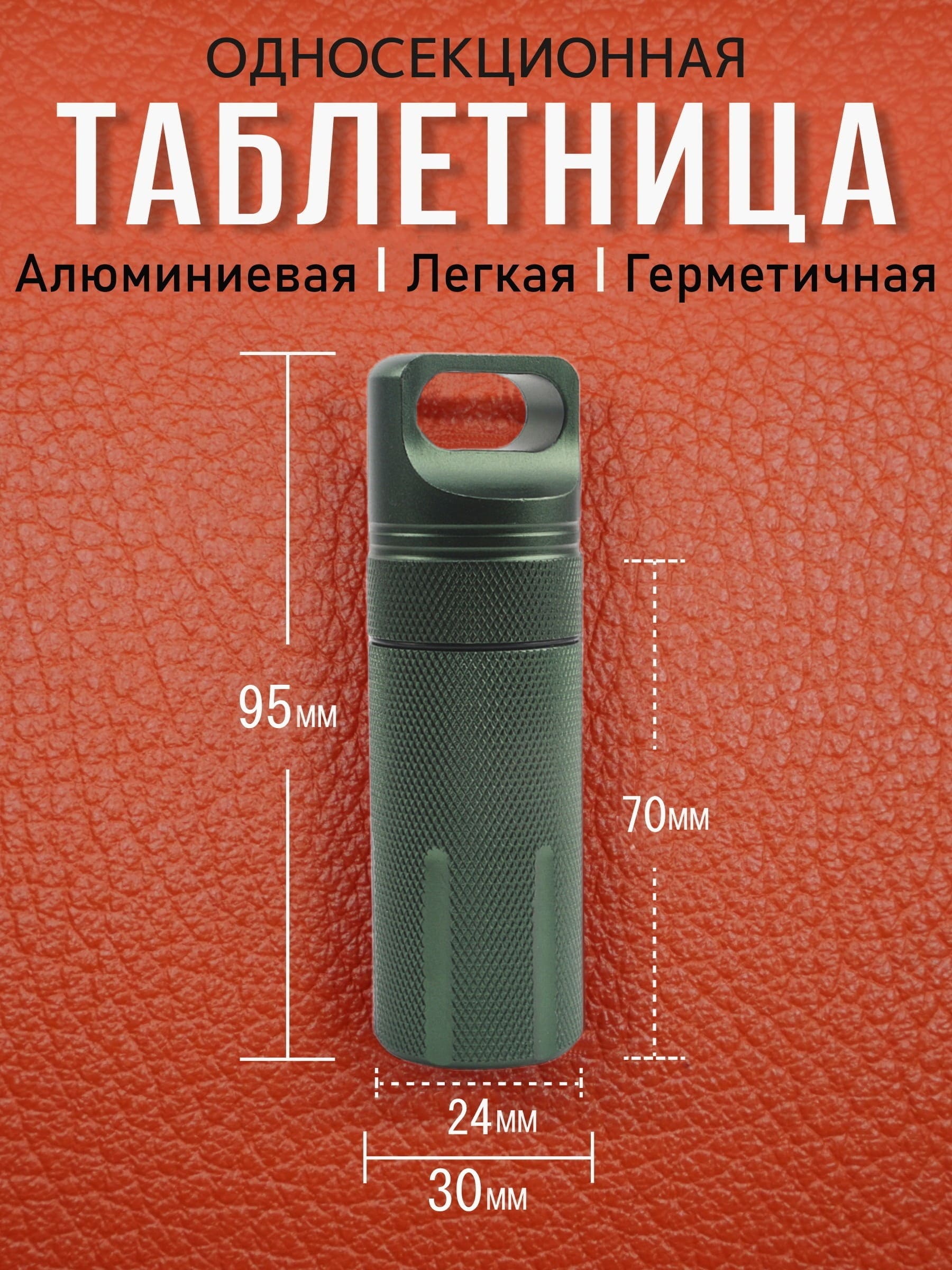 Таблетница алюминиевая, односекционная, герметичная, ∅30 х H95мм, зеленая, VipXHoReCa, арт. VH22021