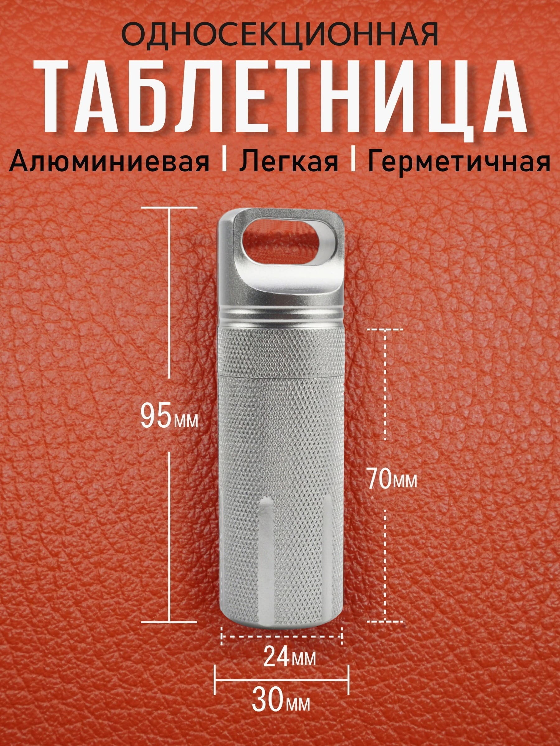 Таблетница алюминиевая, односекционная, герметичная, ∅30 х H95мм, серебристая, VipXHoReCa, арт. VH22025